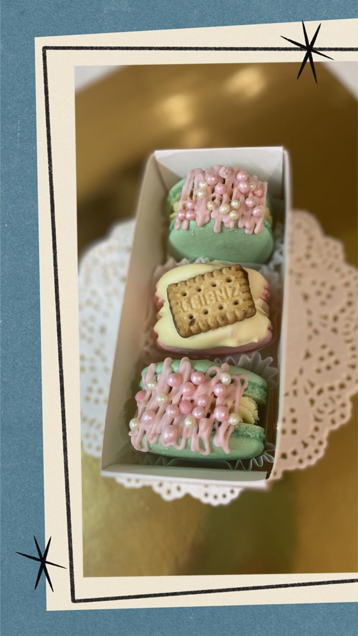 Коробочка 3шт макаронс (полуниця-1 шт, фісташка-малина -2 шт)